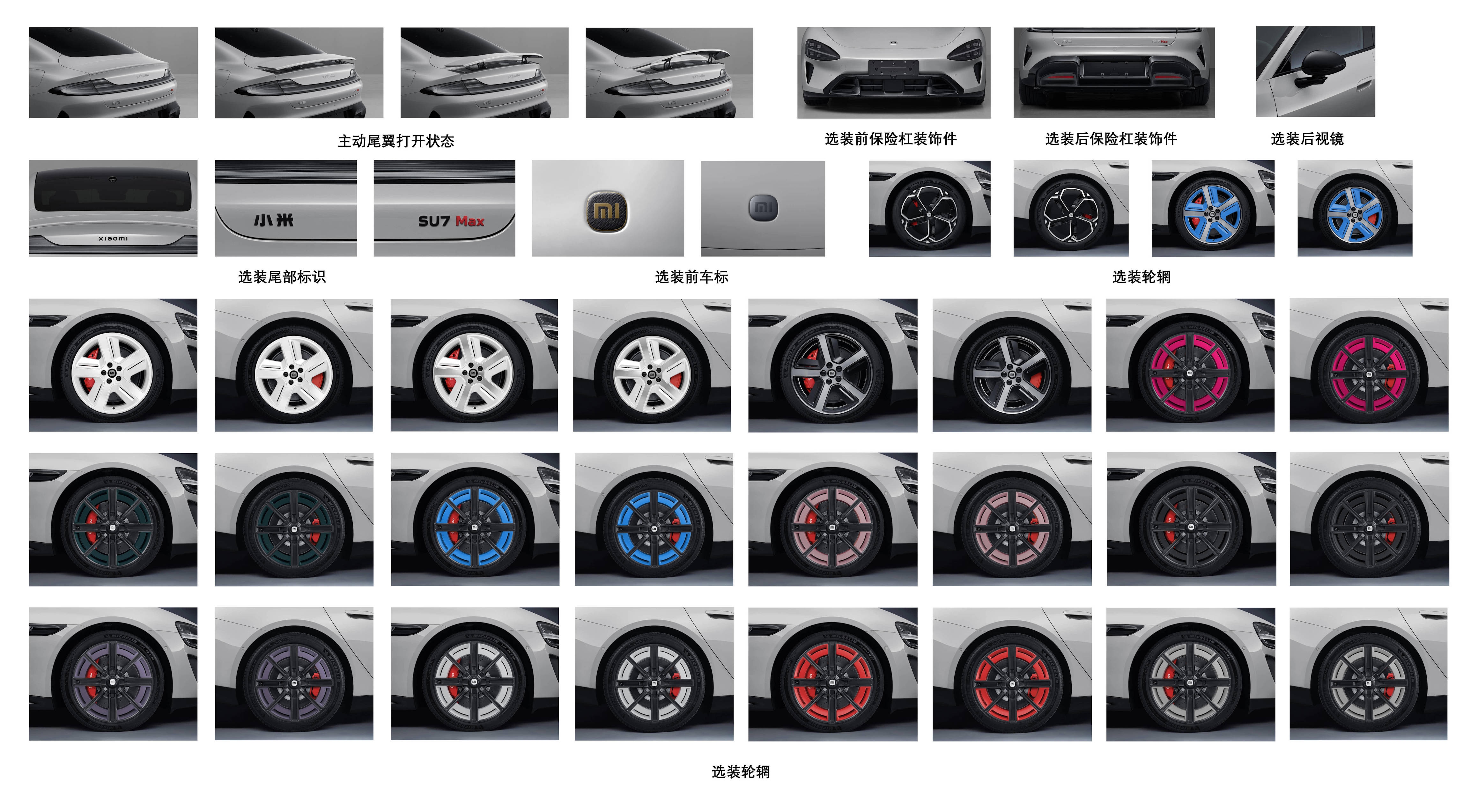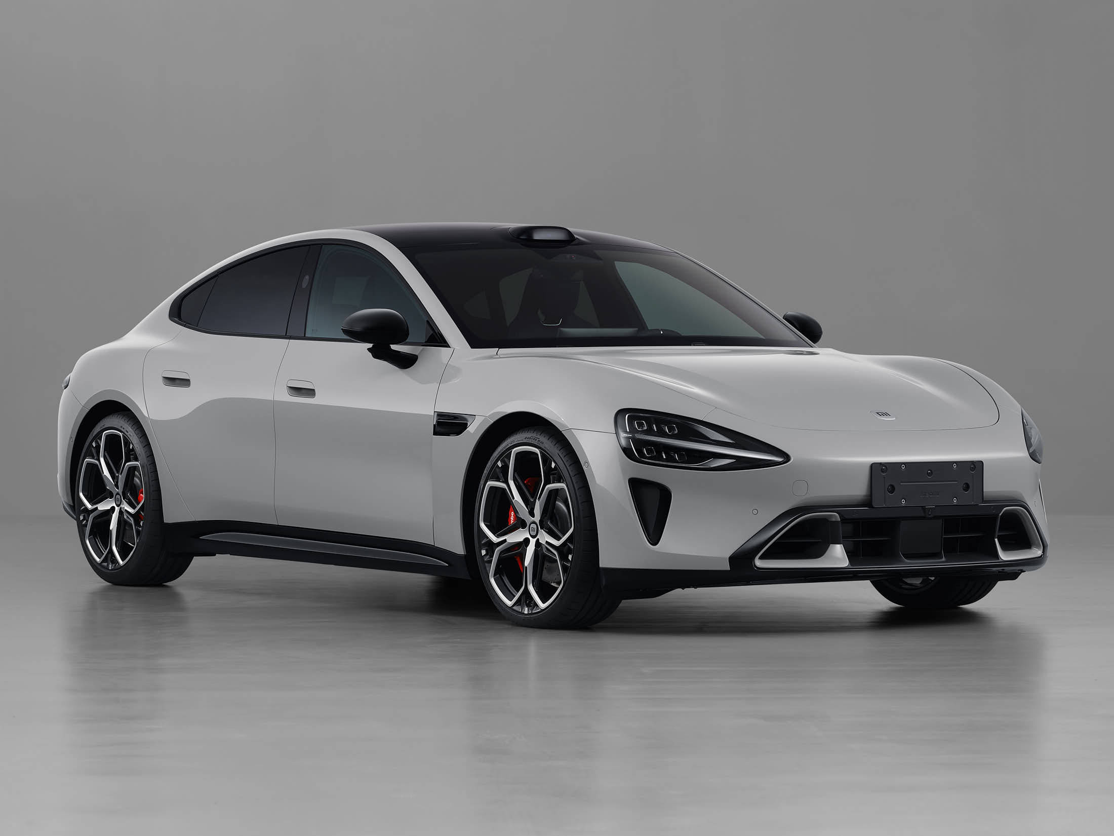 在外观设计上,新一代小米SU7延续了现款车型的经典元素,标志性的“水滴大灯”远光照射距离可达400米,提供出色的夜间行车视野。车身侧面采用溜背式动感造型,搭配层次分明的线条设计,展现出强烈的运动感。新车配备了全新造型的20英寸轮毂和红色刹车卡钳,全系标配前窄后宽轮胎(前245mm/后265mm)以及前四活塞固定卡钳,进一步提升了车辆的操控性能。